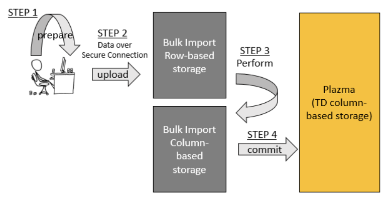 - Bulk Import consists of four key steps: prepare, upload, perform and commit.