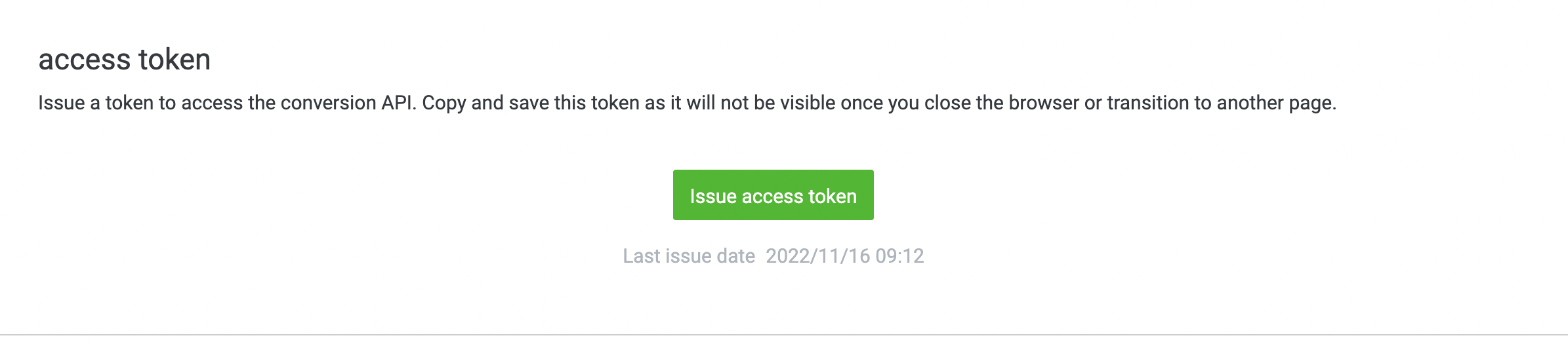 | access_token | Specify the access token for Conversion API issued by LINE Business Manager. | Yes | ||||