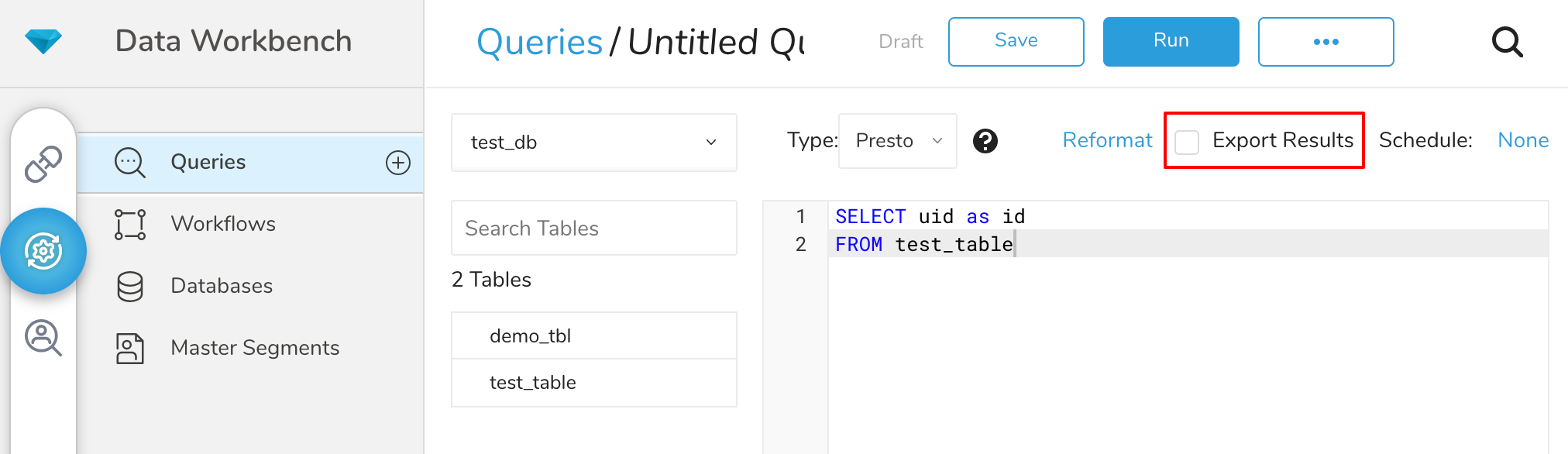 - Navigate to Data Workbench > Queries.
