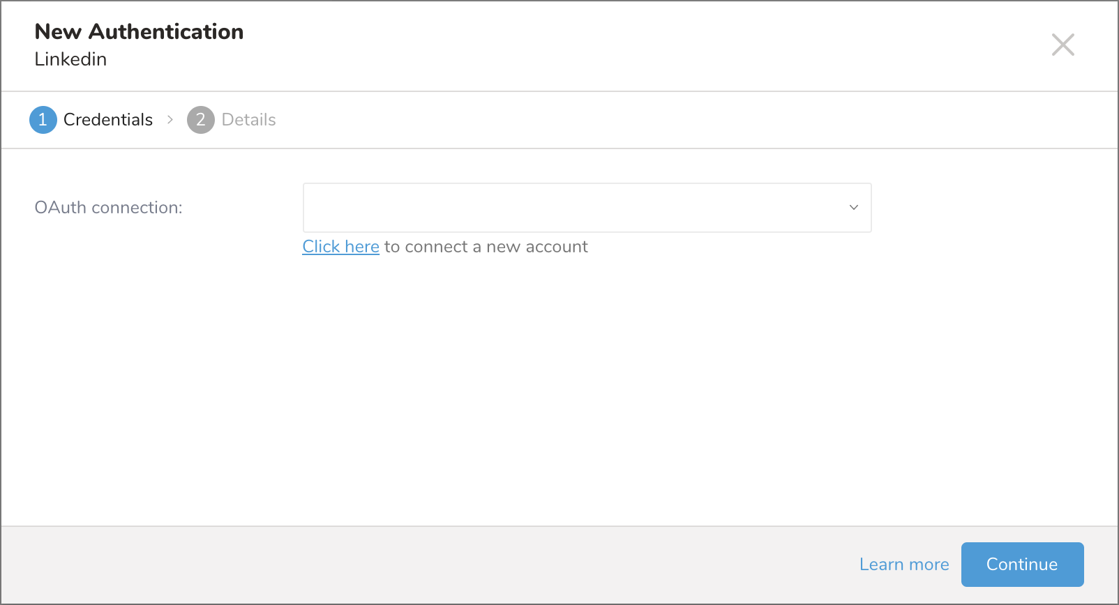 - LinkedIn limits the life span of Refresh Token to 365 days. After one year, you must create a new Authentication to continue uploading data.