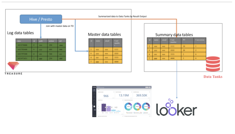 Treasure Data offers Data Tanks that provide a convenient and accessible metric store and enable you to drive your Looker platform from Treasure Data, without the burden of managing one or more separate data marts.