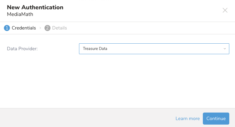 We support two options for connecting to MediaMath. You can use Treasure Data as the Data Provider or you can use your own MediaMath credentials. We encourage you to bring your own credentials.