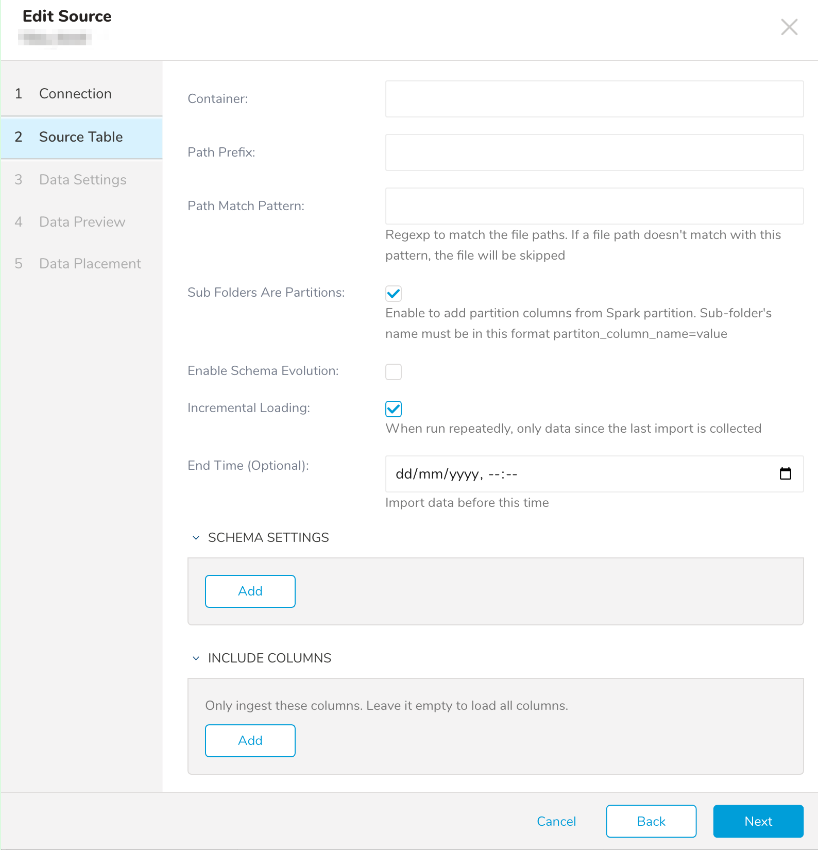 | Path Prefix | The path to the folders container with all your files to ingest |