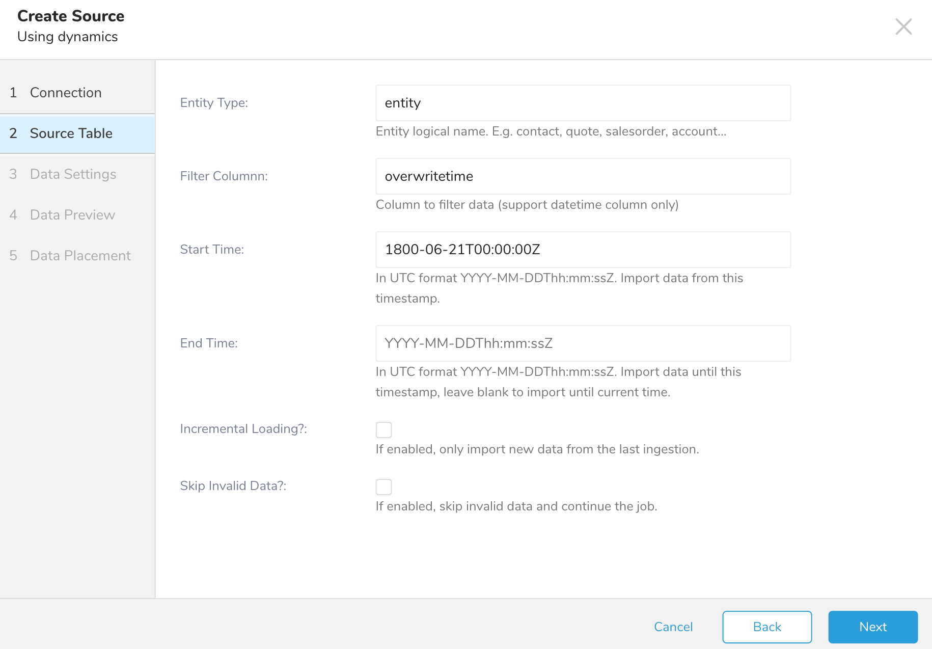 | Incremental Loading? | If enabled, only import new data from the last ingestion. | No |