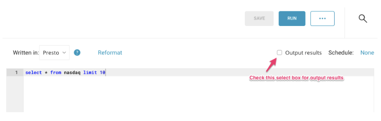 Save the query with a name and run, or just run the query. Upon successful completion of the query, the query result is automatically exported to the specified destination.