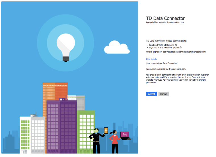 - A Microsoft Power BI account as an organizational user for Azure Active Directory tenant who can grant permissions to Treasure Data.
