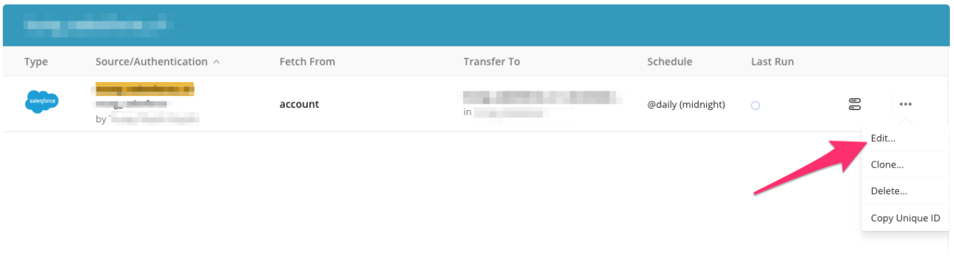 Go to Integration Hub > Sources. Search for your scheduled Salesforce source, select the source and select Edit.