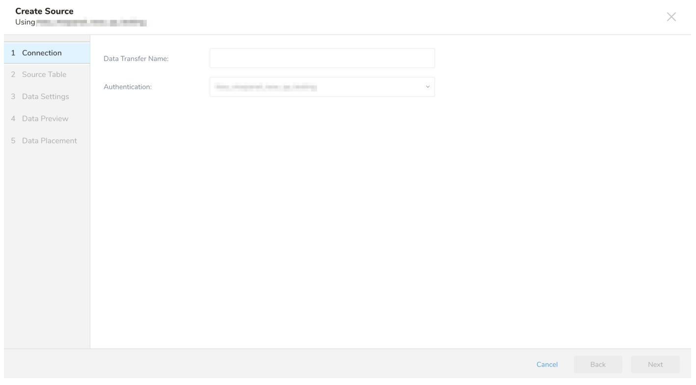 After creating the connection, you are automatically taken to the Authentications page. Look for the connection you created and select New Source.