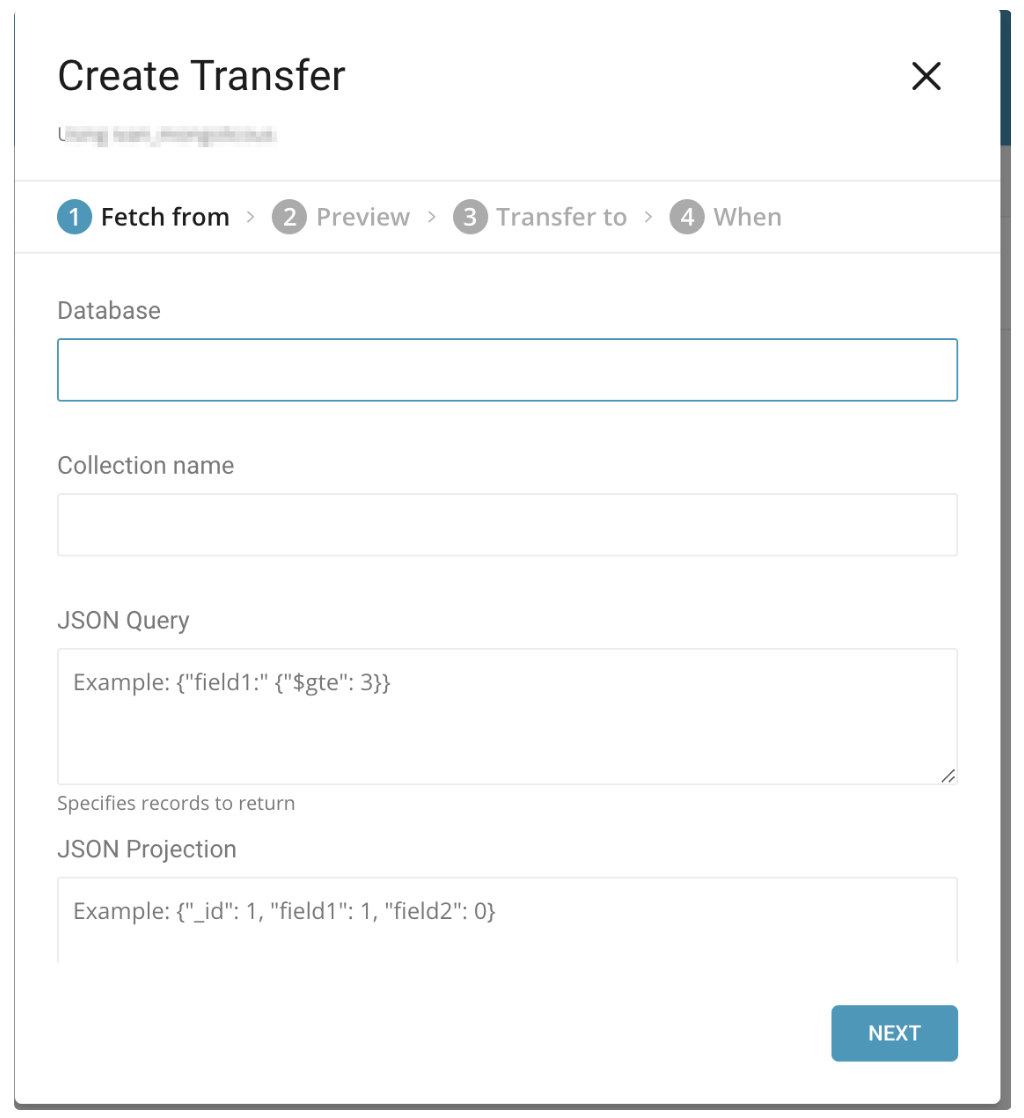 your_database_name) - Collection Name: The name of the collection from which you are transferring data.