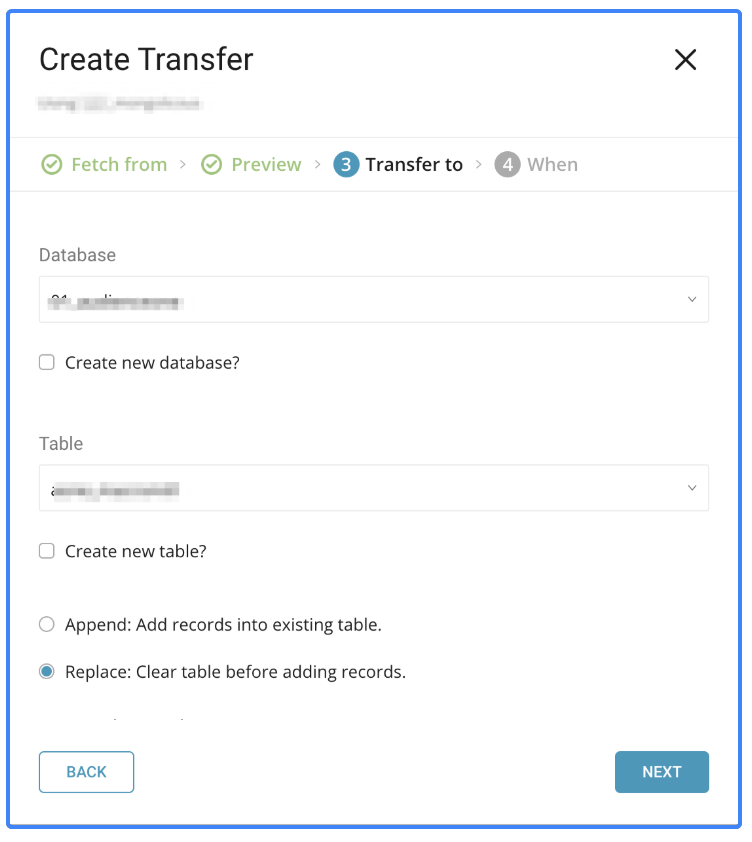 After creating the connection to your remote database, you can import the data from your database into Treasure Data. You can set up an ad hoc one-time transfer or a recurring transfer at regular intervals.