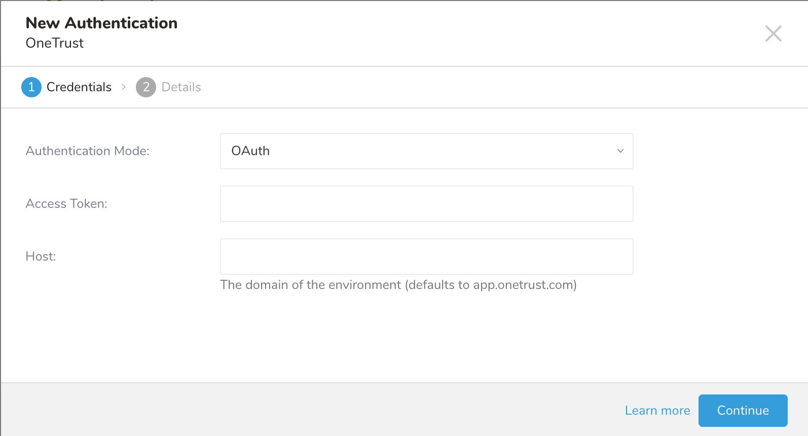 | base_url | Base url of onetrust server. | String. | "app.onetrust.com" | Yes |
