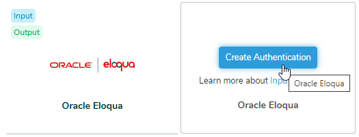 - Search for Oracle Eloqua in the Catalog. Hover your mouse over the icon and select Create Authentication.