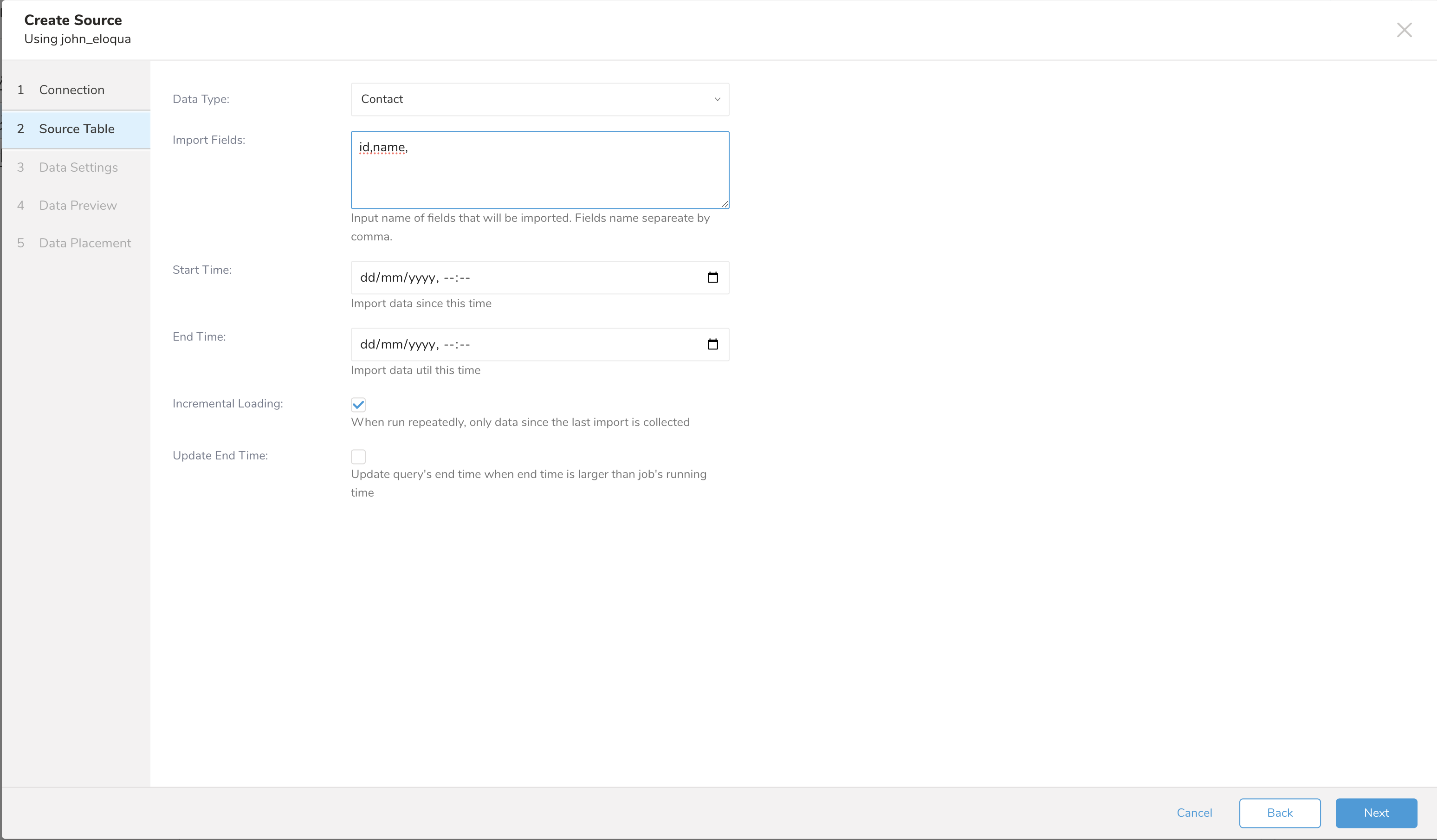 | Incremental Loading | When the Incremental loading option is checked, it imports new and updated contacts incrementally. |