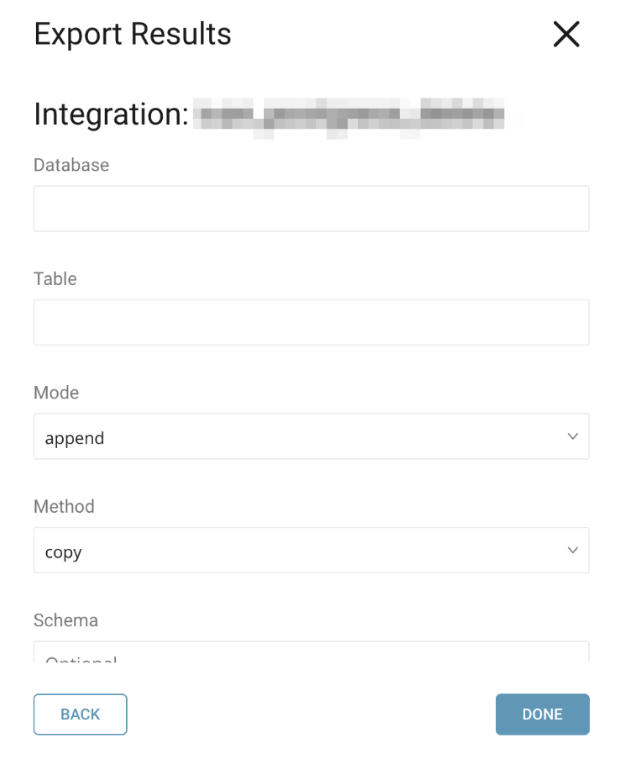 - Truncate: The system first truncates the existing table, then inserts the query results. If the table does not exist yet, a new table is created. This mode is atomic.
