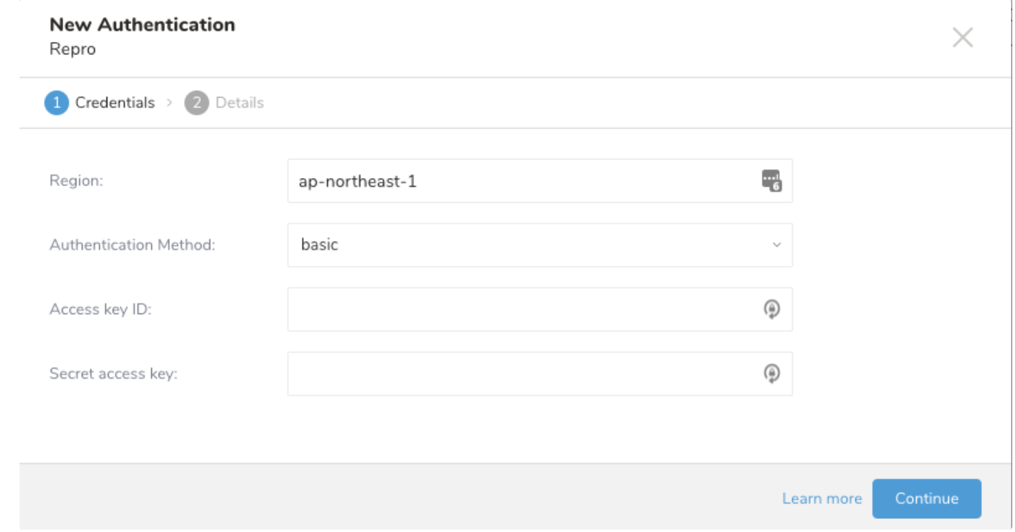When you create a data connection, you must provide authentication to access the integration. In Treasure Data, you configure the authentication first and then specify the source information.