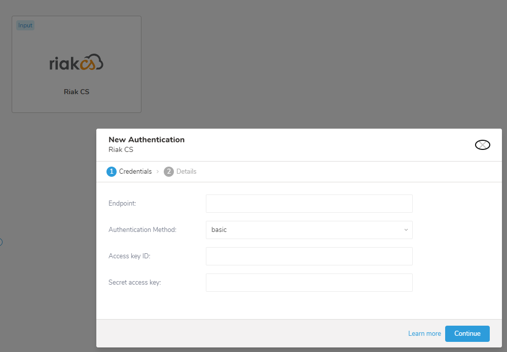 The Data Connector for Riak CS enables the import of the contents of .tsv and .csv files stored in your Riak CS bucket.
