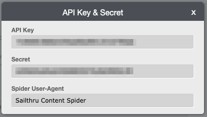 A dialog opens to show the API Key and Secret. This is needed to create a new connection.