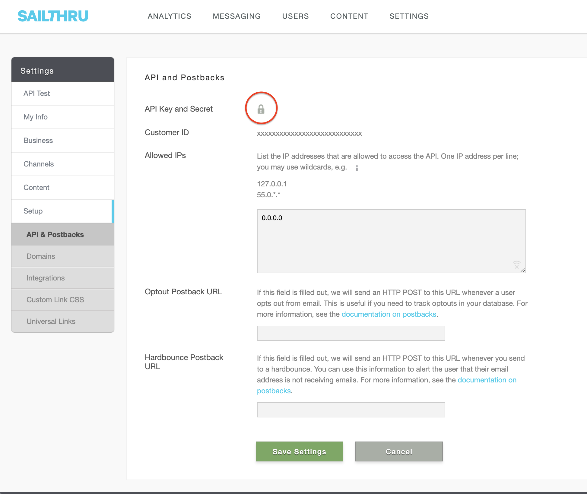 Log in to Sailthru. Navigate to https://my.sailthru.com/settings/api_postbacks.