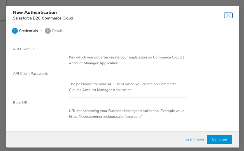 %character. Due to an internal issue with the SFCC authentication server, any secret the contains the% character, is not able to authenticate. - Incremental loading is only supported for Creation Date, not Modified Date