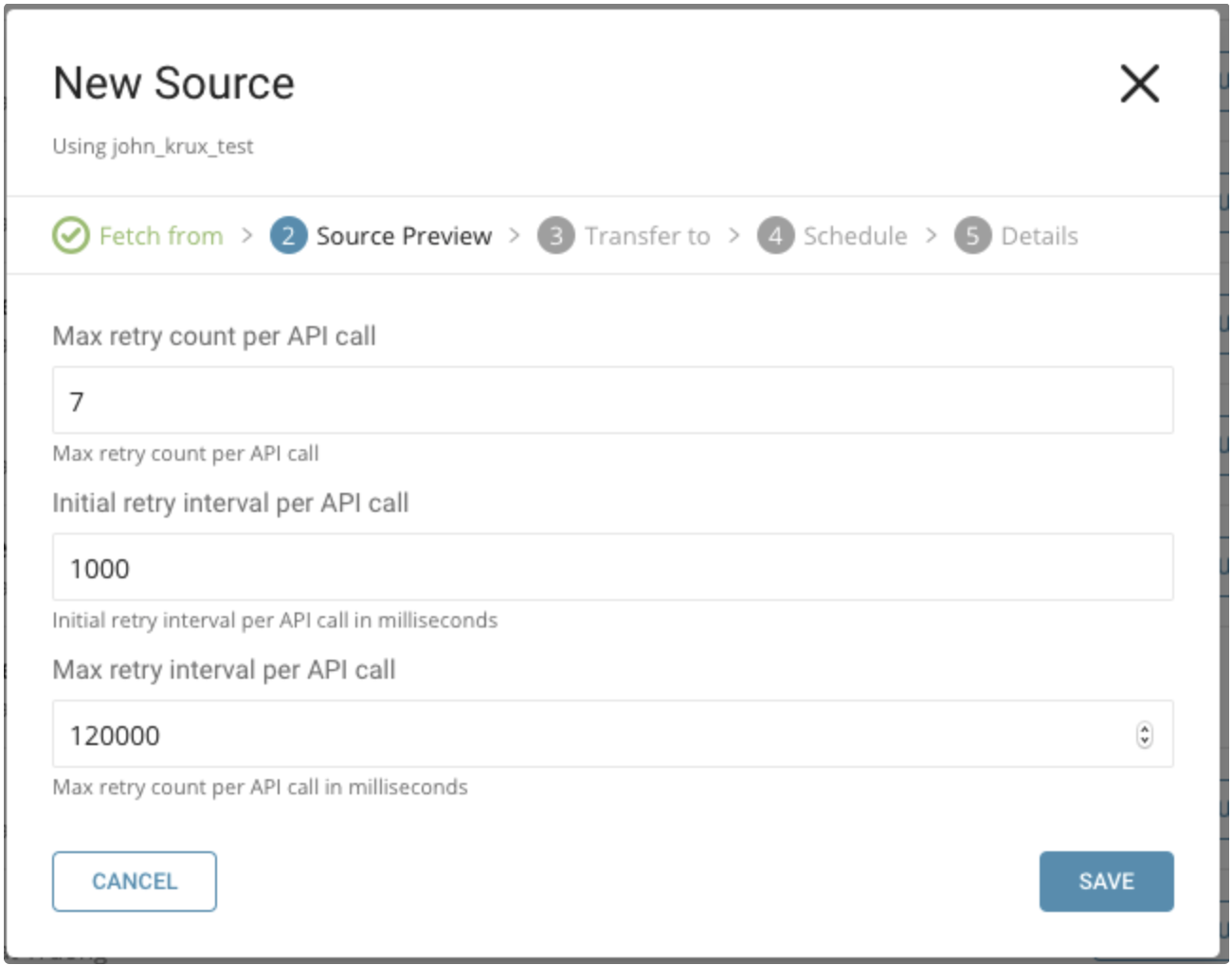 Scheduled execution supports configuration parameters that control the behavior of the data connector during its periodic attempts to fetch data from Salesforce DMP:
