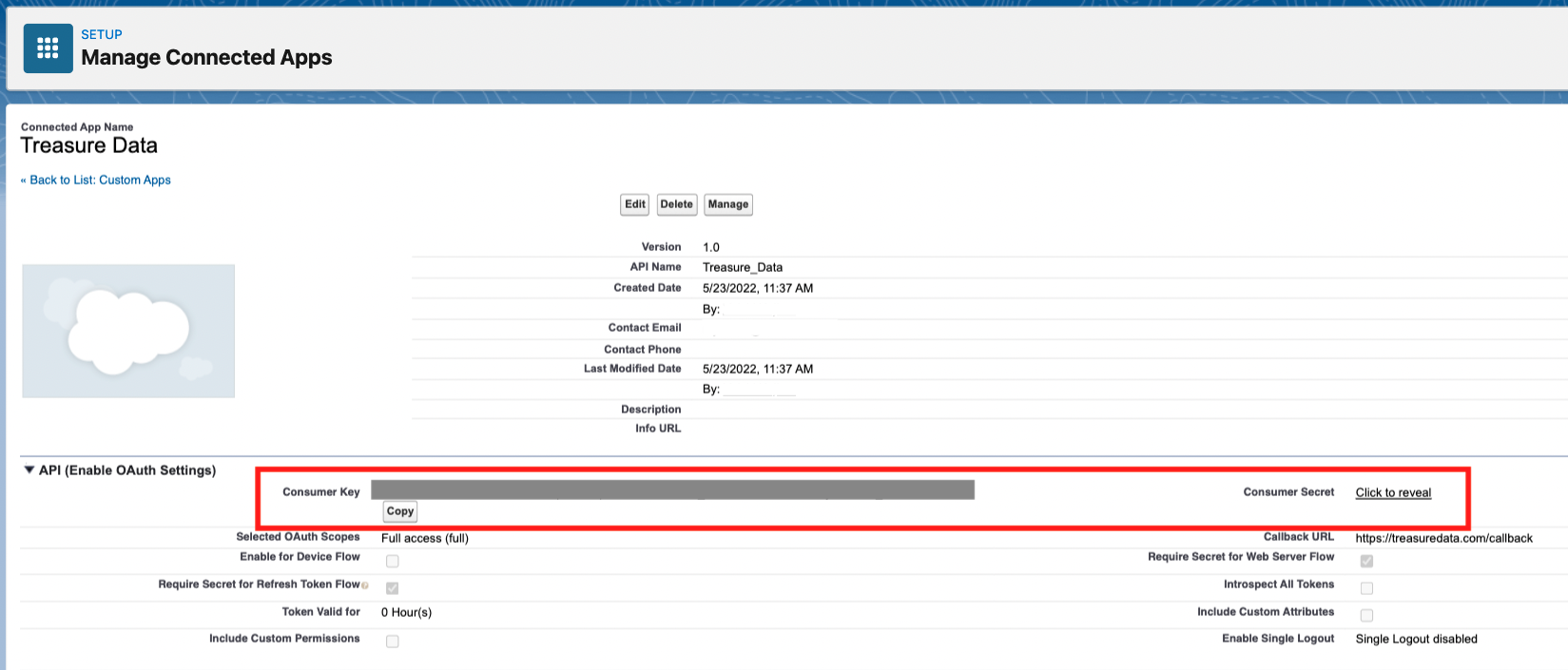 - Allowed access to Salesforce from Treasure Data: sometimes configuring this requires knowing and configuring your TD static IP address. Contact support if you need the static IP address information.