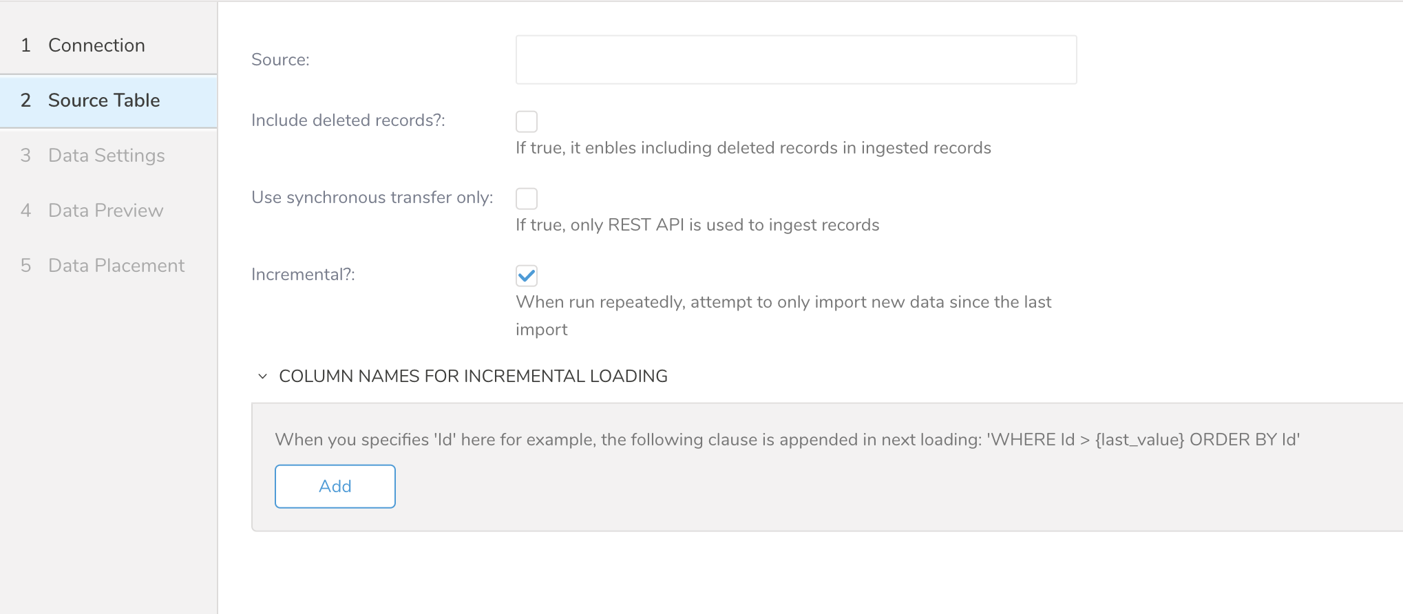 | Incremental | Imports only new data since the last import |