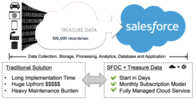 You can connect Salesforce with Treasure Data for greater control over your Salesforce data and better integration with the other business applications in your marketing and sales operations stack. Integrating Salesforce with Treasure Data makes it easy to: