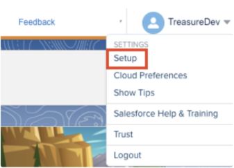- On the Welcome Page, select your name on top right corner and select Setup.
