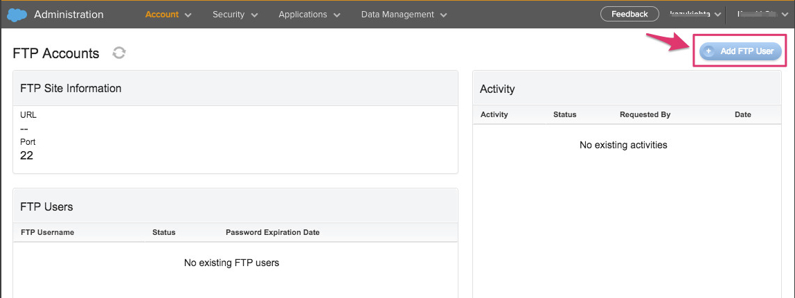 From the Account drop-down menu, select FTP Accounts. You are to establish an SFTP account.