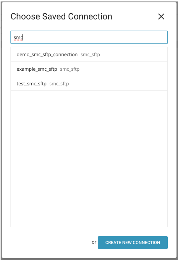 After entering the credential information, you must enter a connection name to filter your connections in Choose Saved Connection dialog.