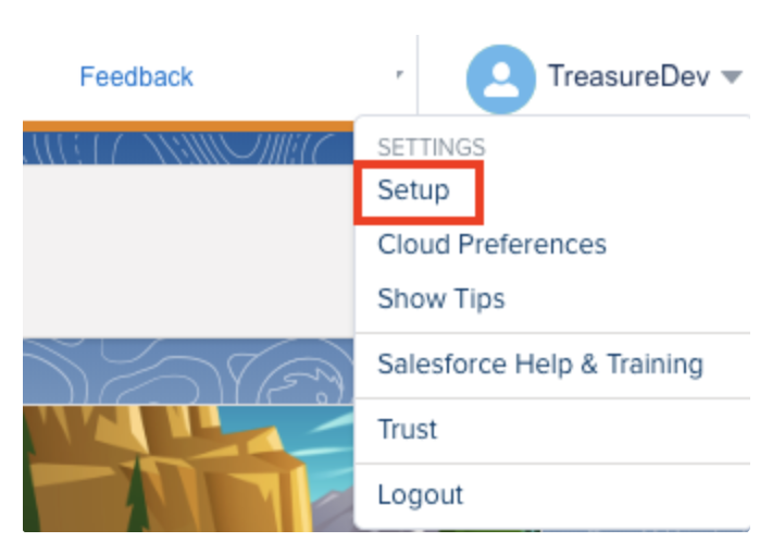 On the Welcome Page, select your name on the top-right corner then select Setup.