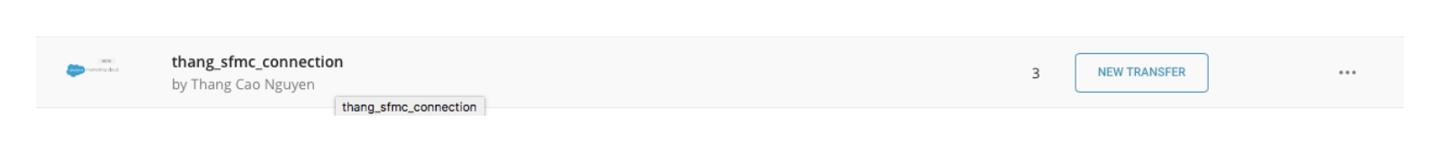 After creating the connection, you are automatically taken to Sources. Look for the connection you created and select New Transfer.