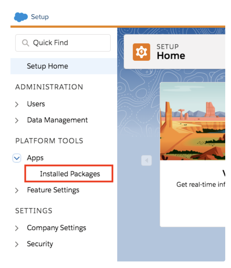 3. On the left side menu of new screen, navigate to App > Installed Packages.