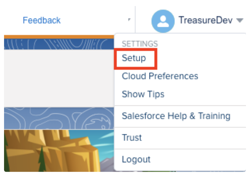 - On the Welcome Page, select your name in the top right corner and select Setup.
