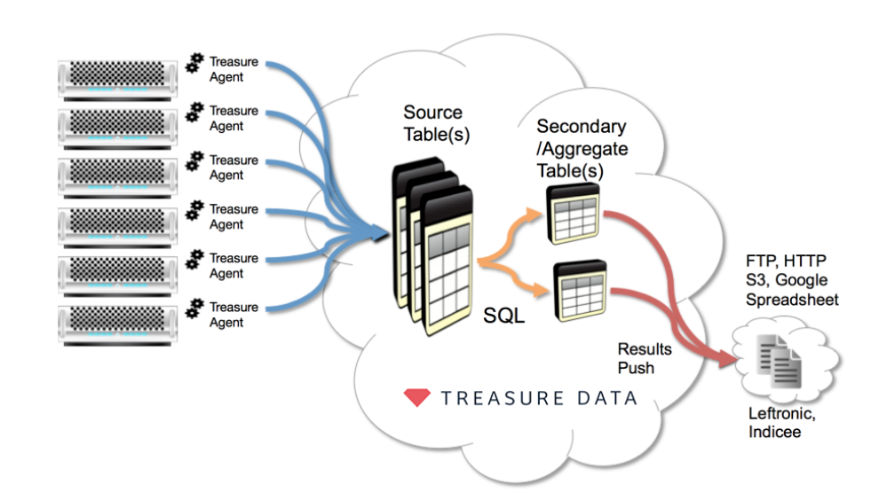 The following figure illustrates a typical usage scenario that involves exporting data from Treasure Data Agents into a SFTP or similar server.