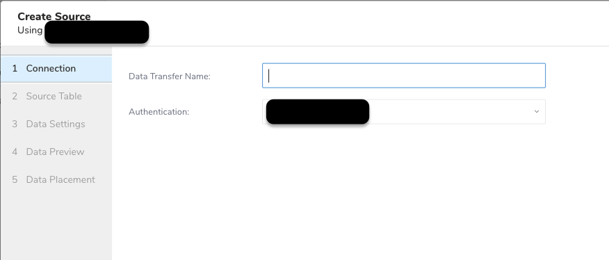 Type a name for your Source in the Data Transfer Name field.