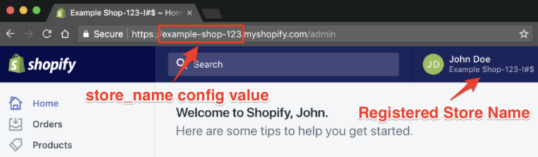 Shopify translates your free-form Store Name into URL-friendly value. For example, it truncates special characters and replaces spaces with hyphens. For example: Example Shop-123-!#$ becomes example-shop-123: