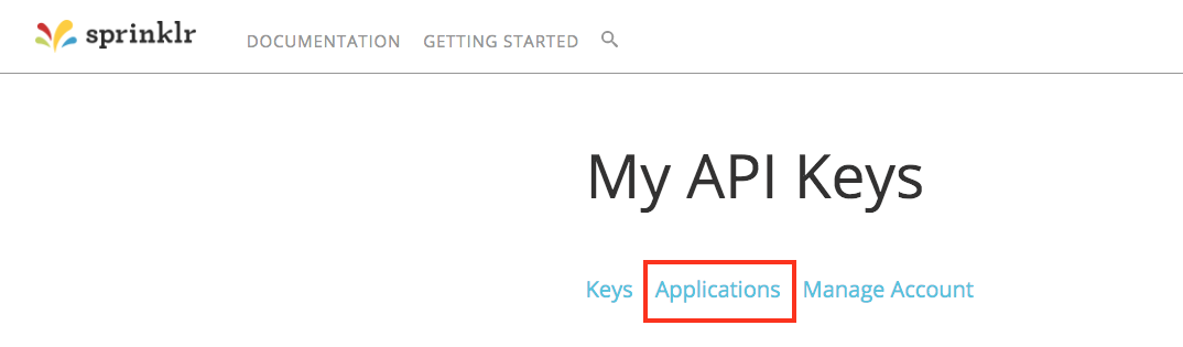 Next, go to https://developer.sprinklr.com/apps/mykeys to see your key (value 3 of 7 required for this configuration) and secret (value 4 of 7). Note the values. You use the information in later steps.