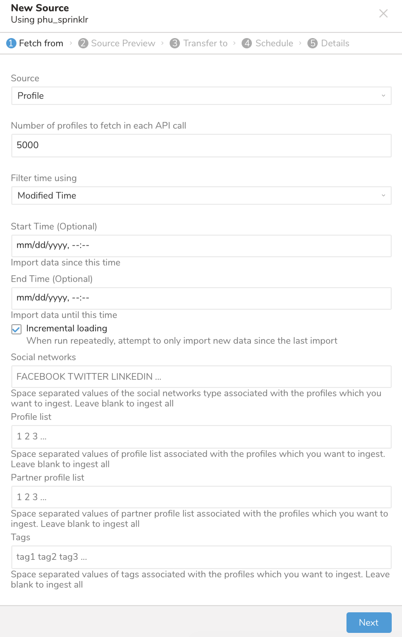 | Source | The data source in Sprinklr that you want to ingest (currently supports only Profile) | Yes |