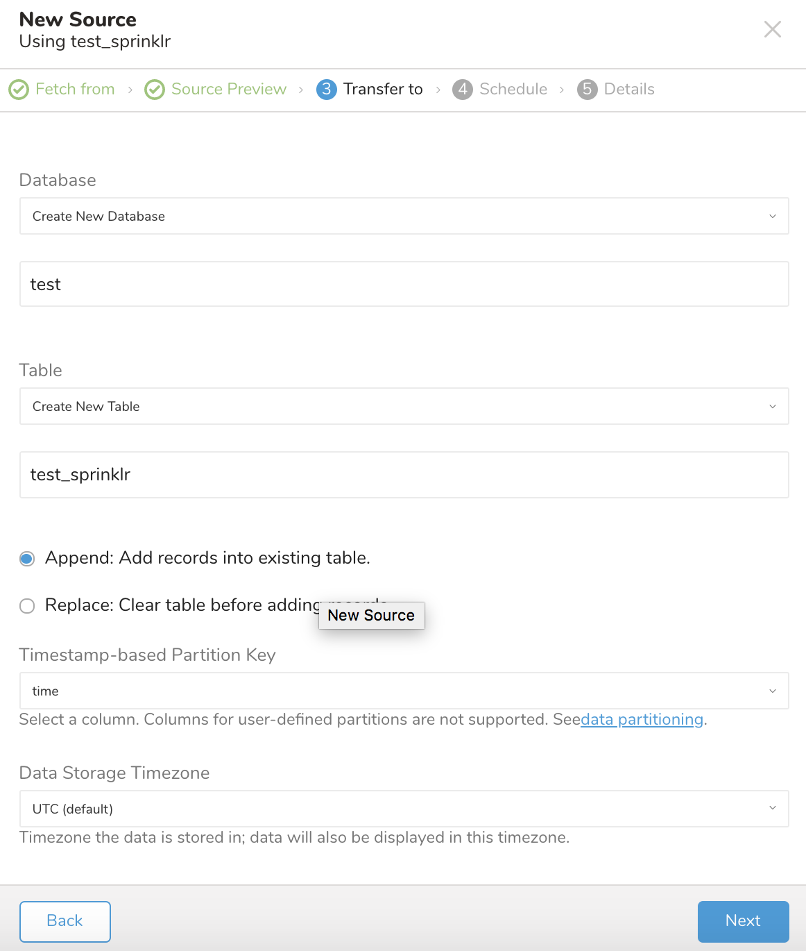 Select whether to append records to an existing table or replace your existing table.
