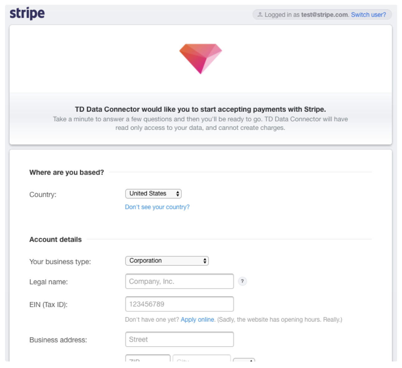- refresh_token: Stripe OAuth2 refresh_token, you need to grant access to your Stripe app, using an Stripe user account