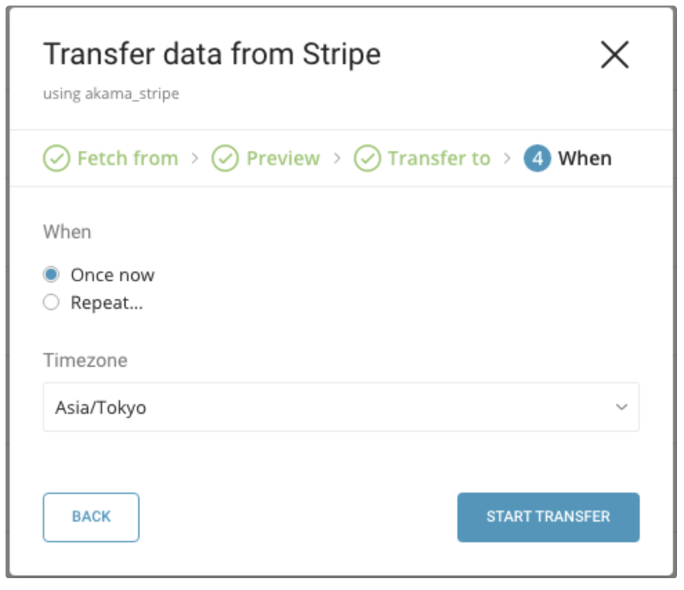 Specify the schedule of the data transfer using the dialog below and select Start Transfer.