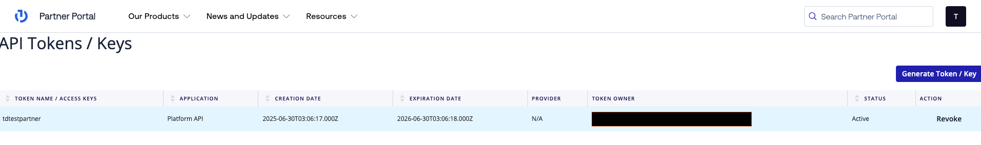 Go to Manage API Tokens/Keys and create a new token/keys or select existing tokens