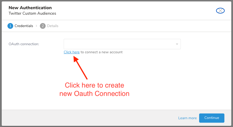 - Select an existing OAuth connection for Twitter, or select the link under OAuth connection to create a new one.