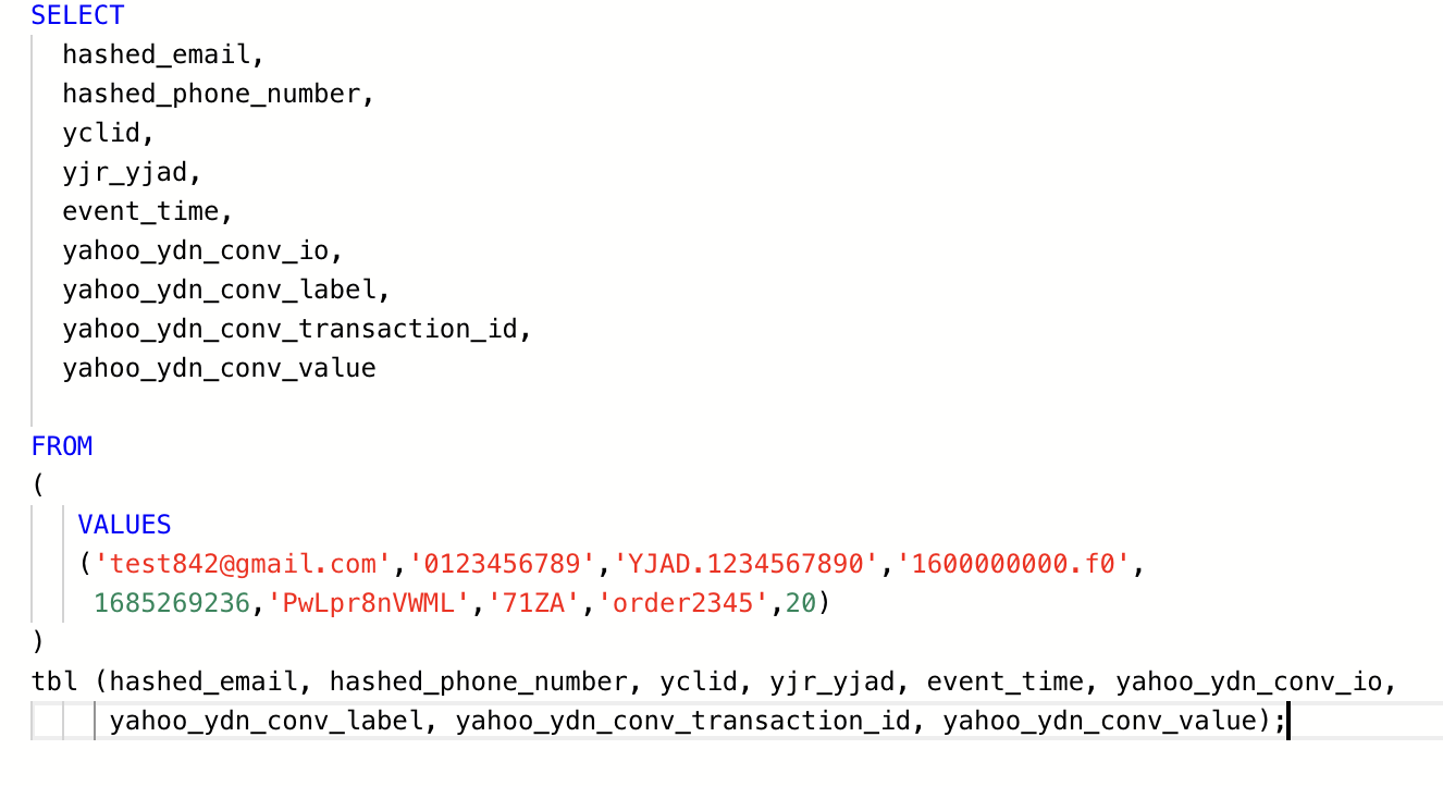 - You need to define the column mapping in the query. The columns in the query represent data to be send to Yahoo! Ads Conversion.