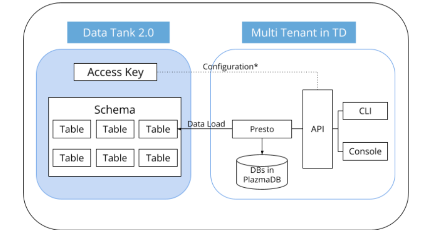 - Data Tank 2.0 Presto Integration requires an access permission to the schema associated with the access key in Data Tank 2.0. Access Control is managed by Management UI.