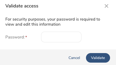 - (Optional) Depending on your permission access, you might need to also to validate your identity with a password.
