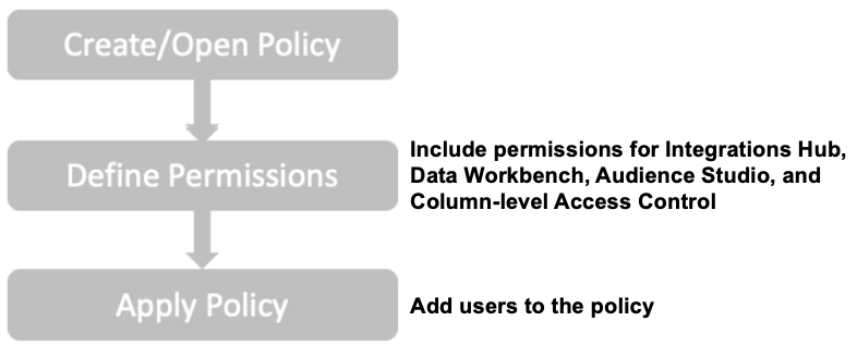Only account owners and administrators can view and specify permissions for the Integrations Hub, Data Workbench, Audience Studio, and Column-level Access Control.