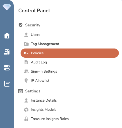 - Navigate to Control Panel > Security >Policies.