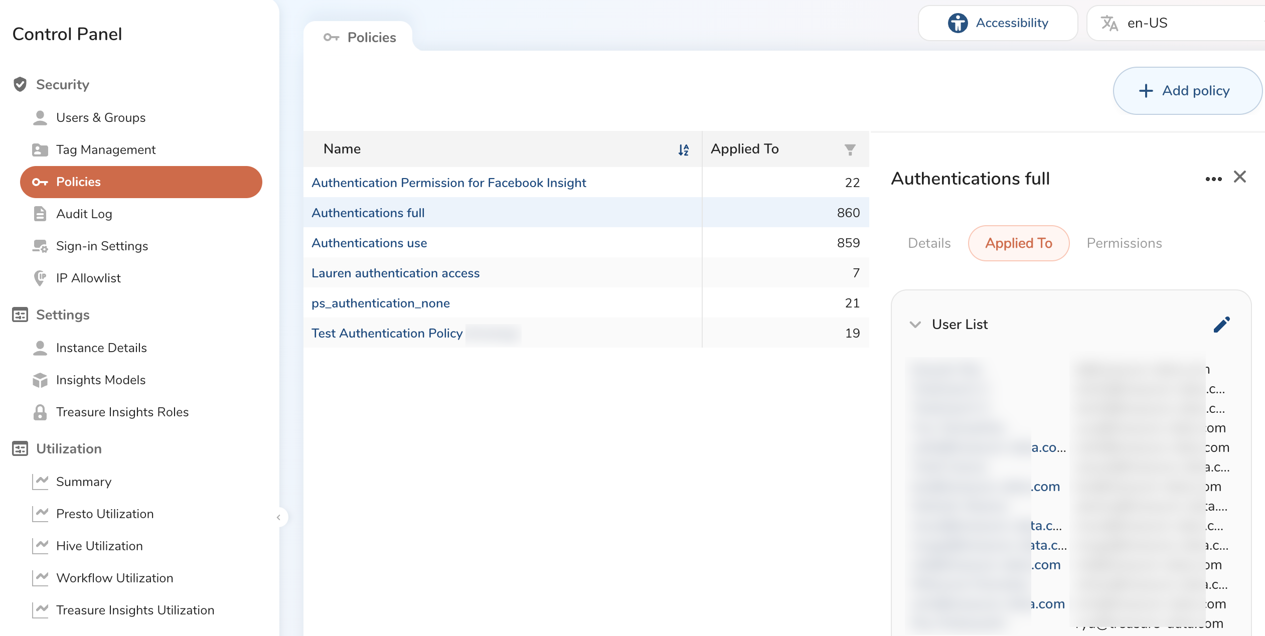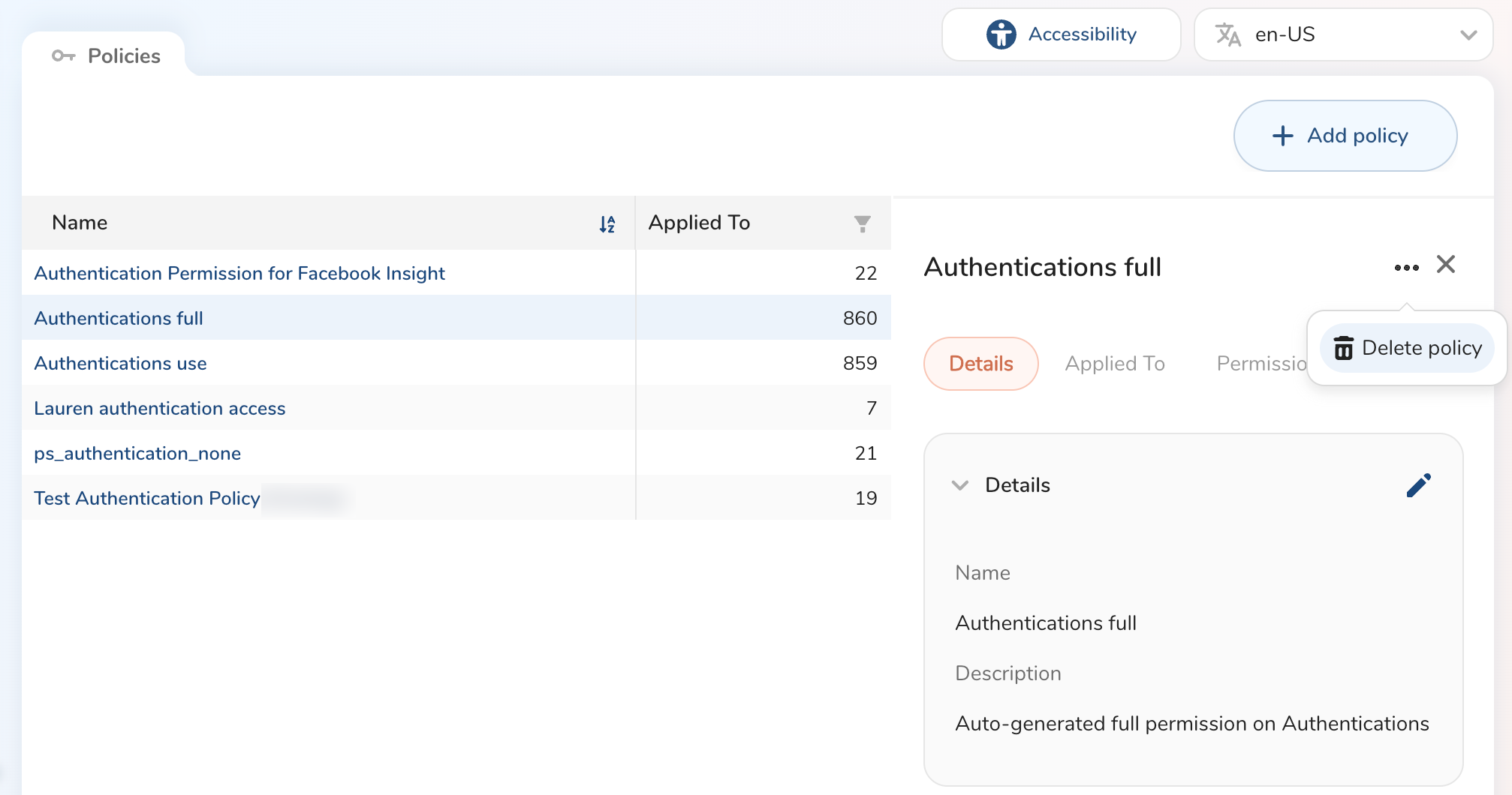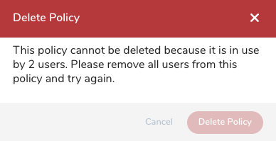 If the policy still has users assigned, a warning displays and you need to remove all users from the policy.